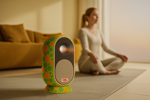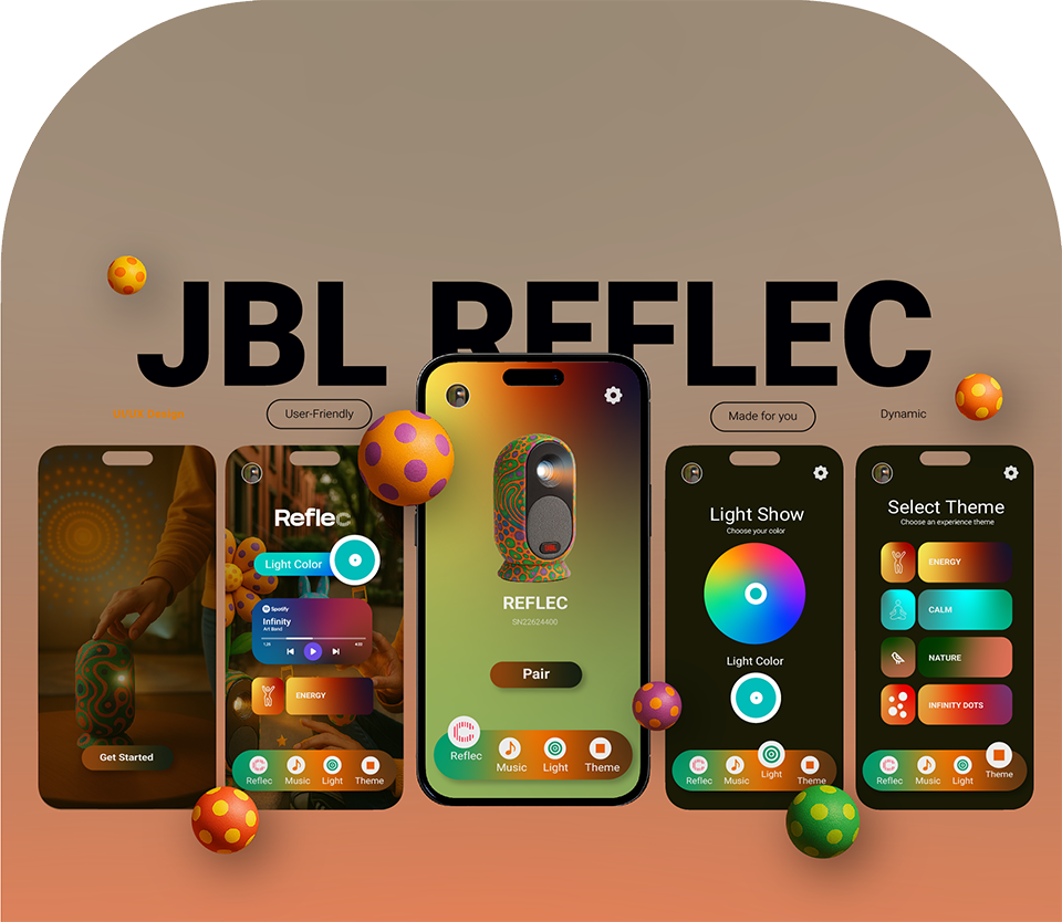 I designed a concept speaker for JBL called REFLEC, made with artist Yayoi Kusama. It mixes sound, light, projection, and AR technology to create an interactive and multi-sensory music experience.